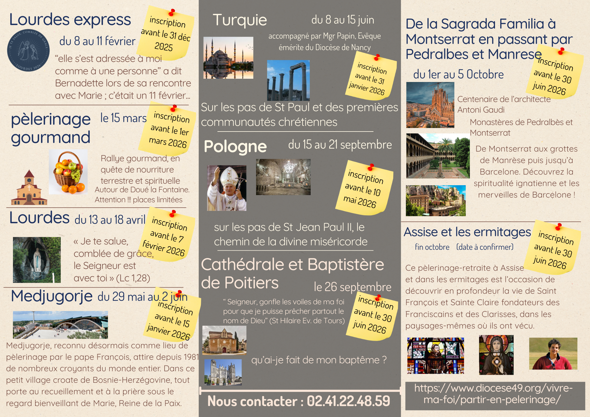Le bureau des pèlerinages (situé Centre Saint-Jean, 36 rue Barra à Angers) est ouvert :